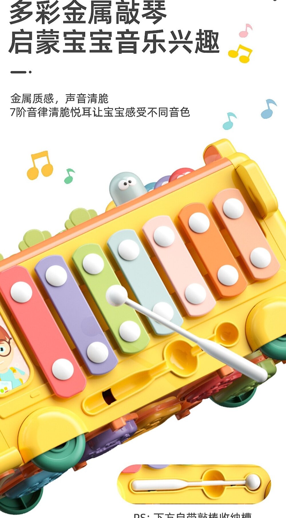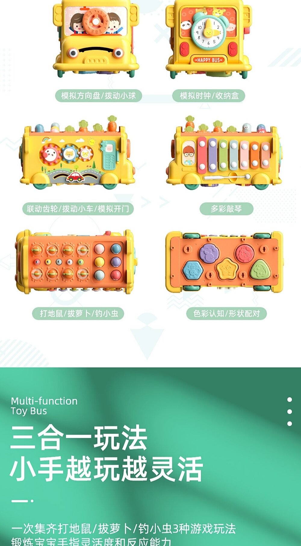 媽媽買 多功能巴士車 幼兒玩具 打地鼠 拔蘿蔔 敲琴 模擬時鐘 模擬方向盤 益智玩具 多面體