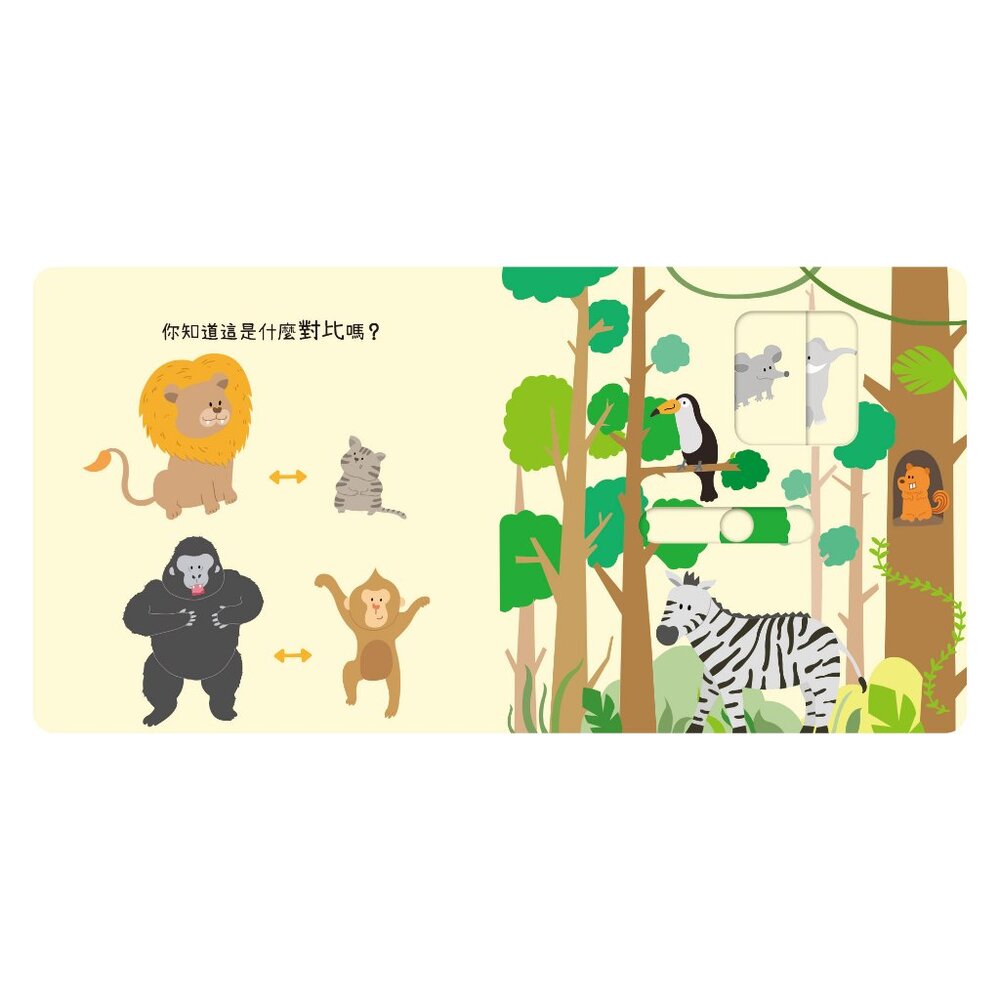 「誰比較大?」「哪個更高?」從小小的老鼠 🐭 到大大的大象 🐘,從冷冰冰的雪 ❄️ 到熱呼呼的湯 ☕,對比概念變得更清楚!