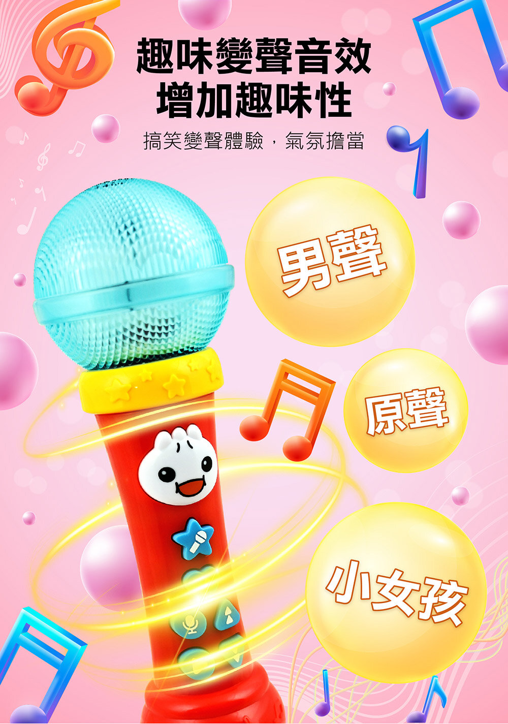 🔹 🎭 趣味變聲魔法:一鍵變換 男聲 / 女聲 / 原音,增添唱歌樂趣,寶貝超愛玩!