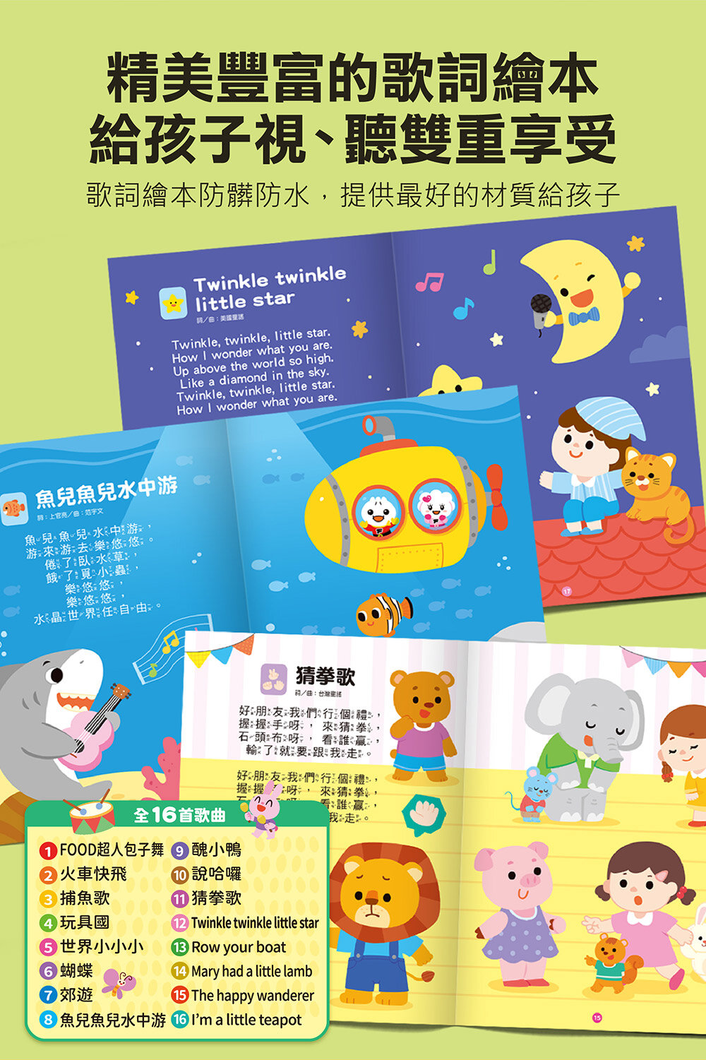 ✅ 童謠繪本 x1 (16首中英兒歌,防撕防水設計)