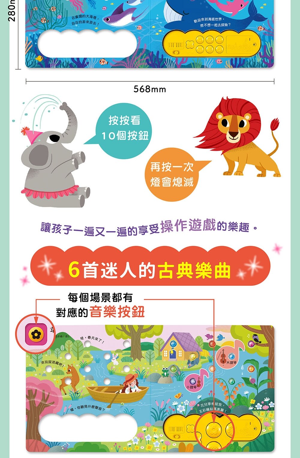• 🎼 6首古典音樂旋律:《聖母頌》《莫札特小夜曲》《天鵝湖》等經典旋律,讓孩子從小陶醉在音樂世界!