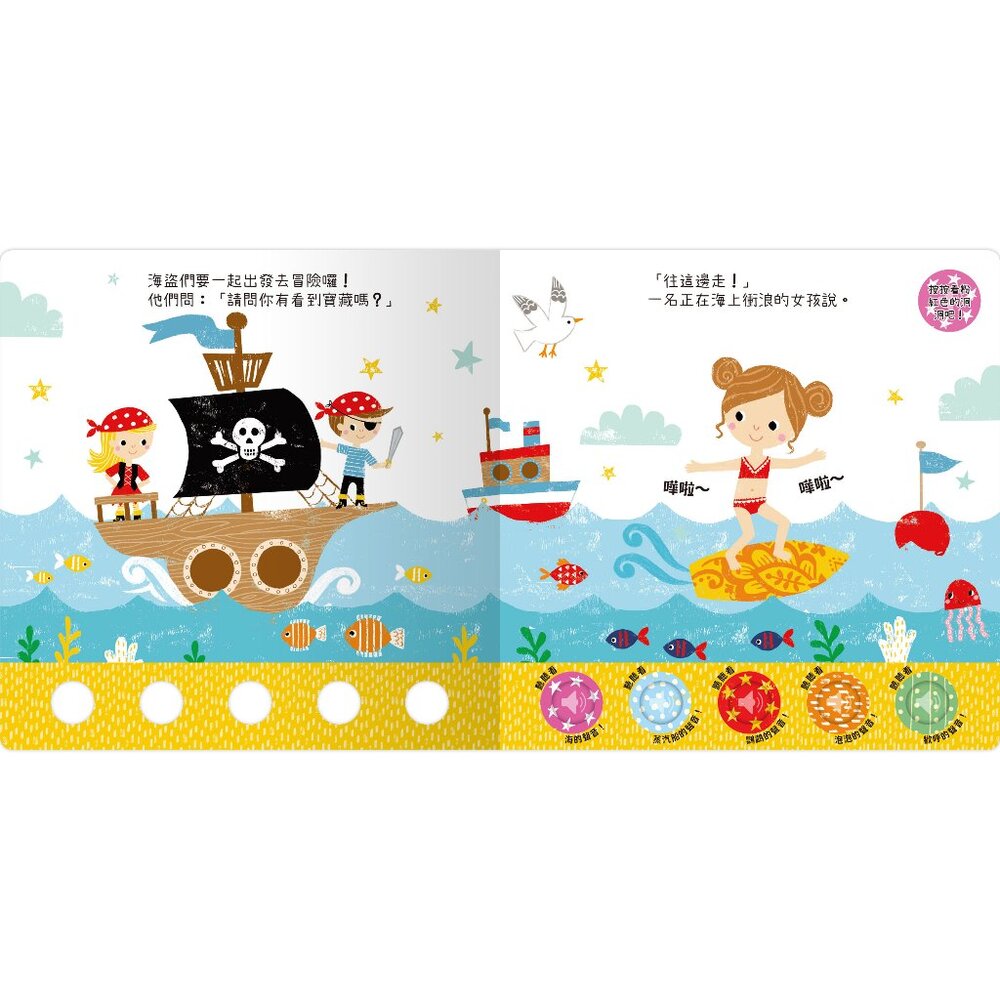 海盜們揚起黑帆,準備尋找藏在深海的寶藏!按下按鍵,聽聽蒸汽船、鸚鵡和海浪的聲音,跟著故事沉浸在海盜的奇幻世界中!