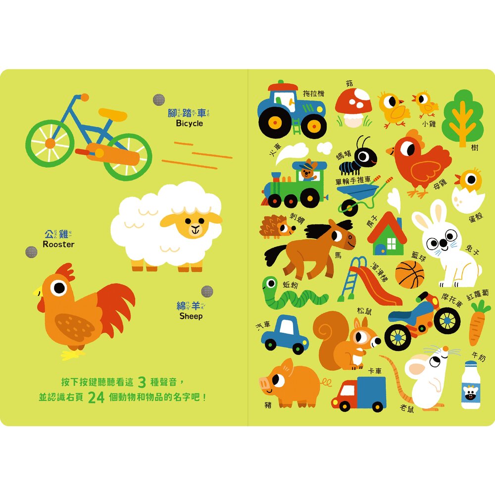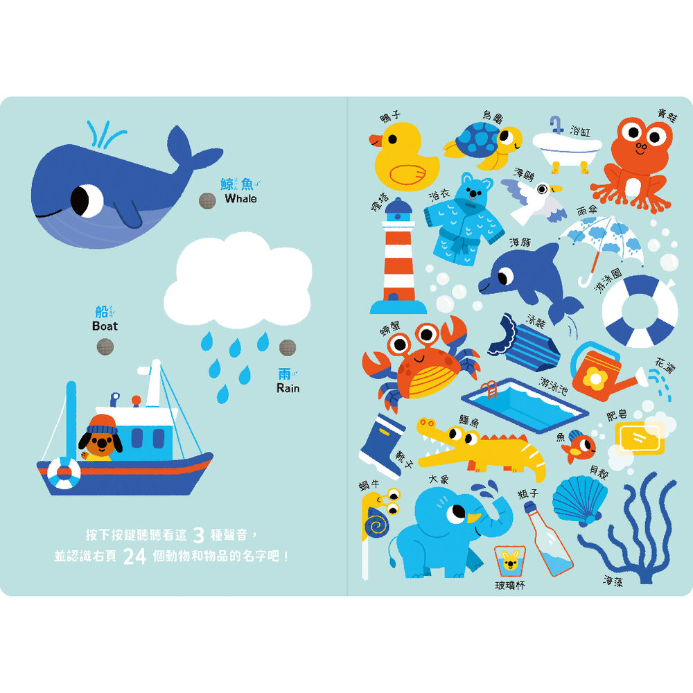 寶寶的第一本認知啟蒙有聲書來啦!透過近 200個必學單字、42種生動音效 和有趣的隨機播放遊戲,這本書讓孩子在聆聽、觀察、尋找中開啟認知的大門,陪伴他們快樂成長,探索繽紛世界!
