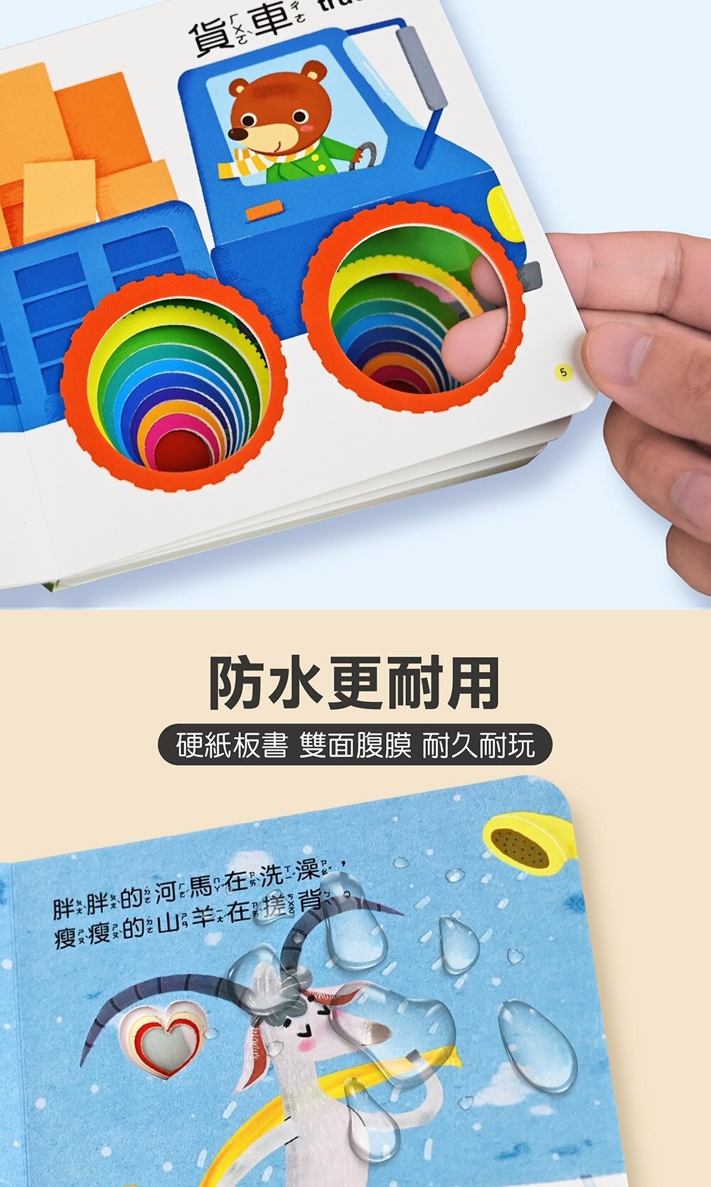 本書採用大字型加注音,讓低幼齡孩子也能輕鬆閱讀,用手指戳洞洞!