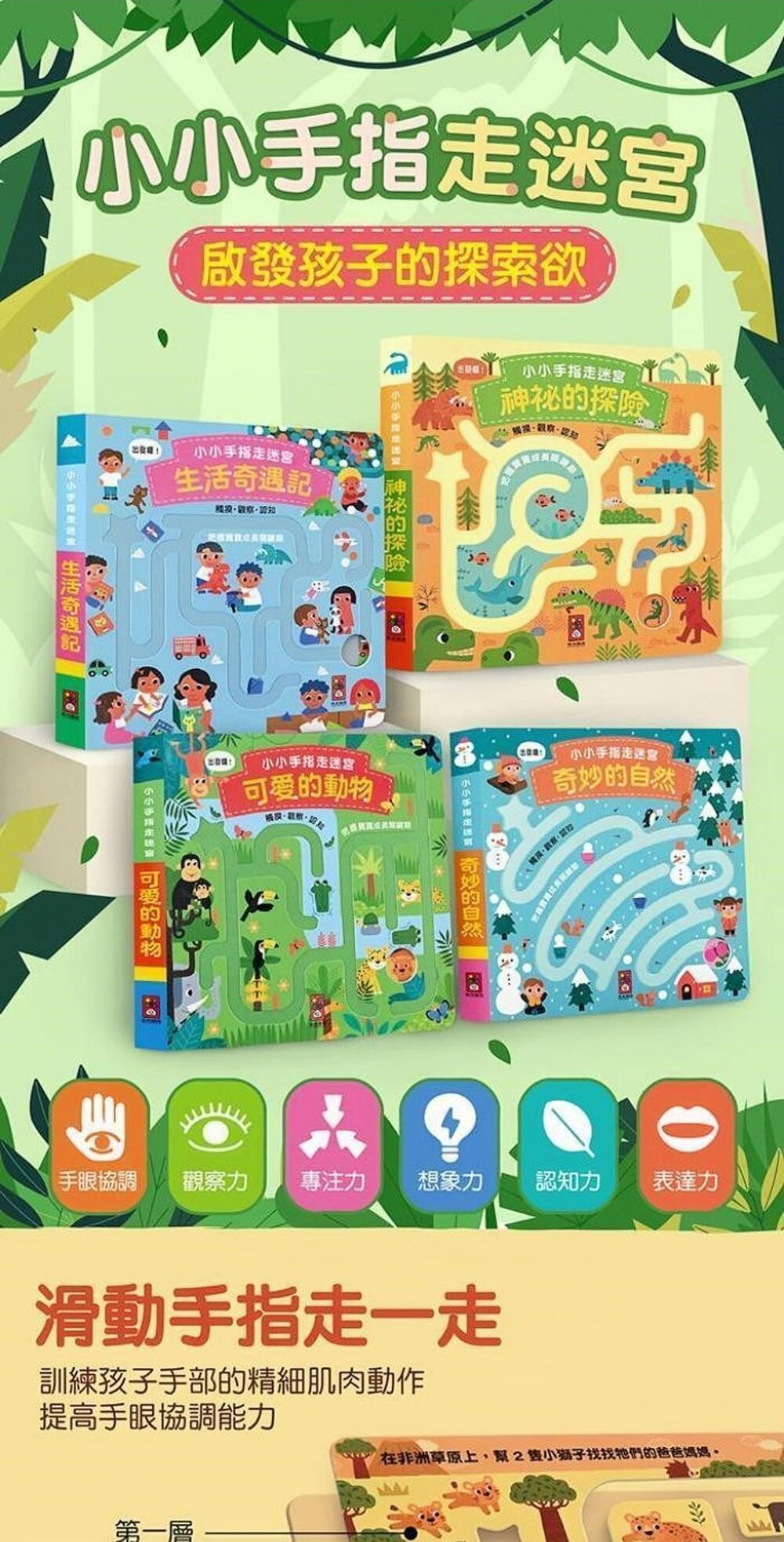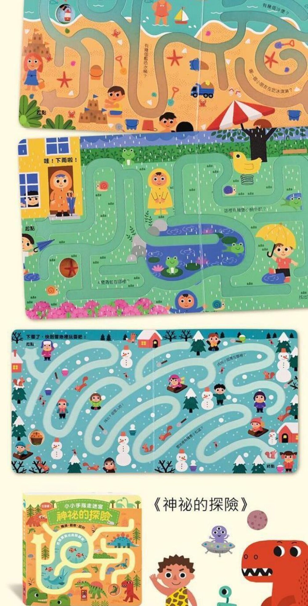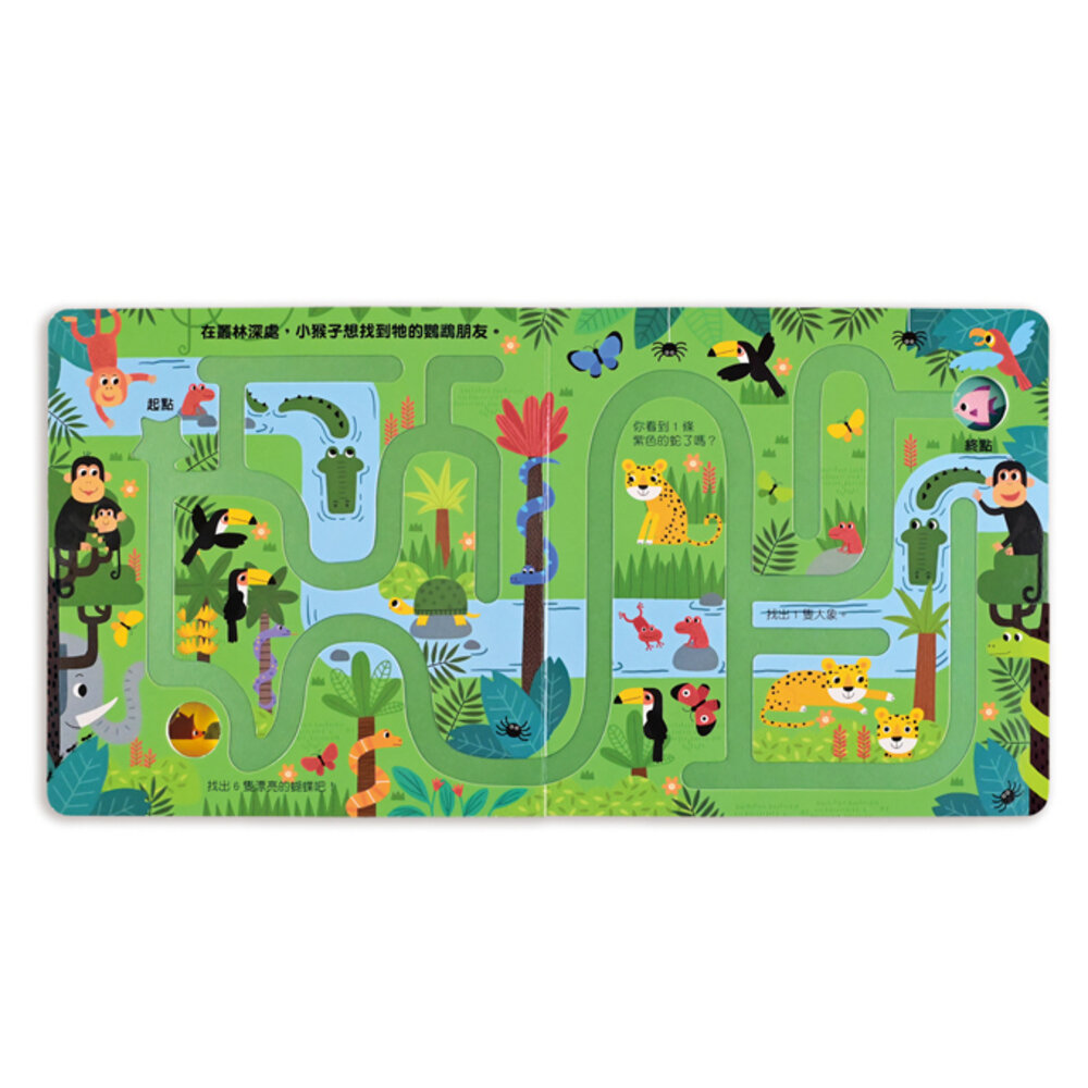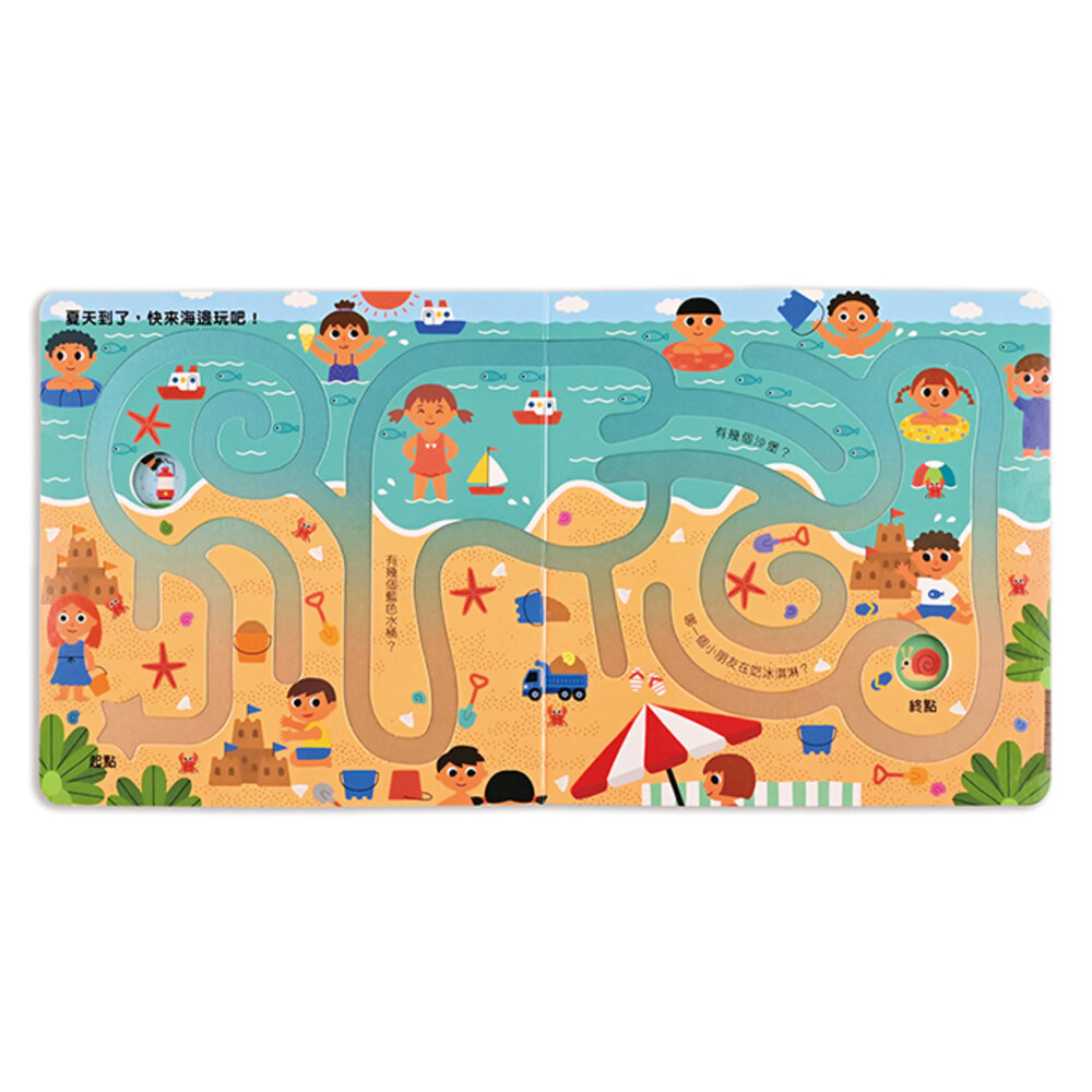專為孩子小手指設計的迷宮凹槽,能讓孩子輕鬆放入手指走迷宮,為閱讀增添遊戲性。