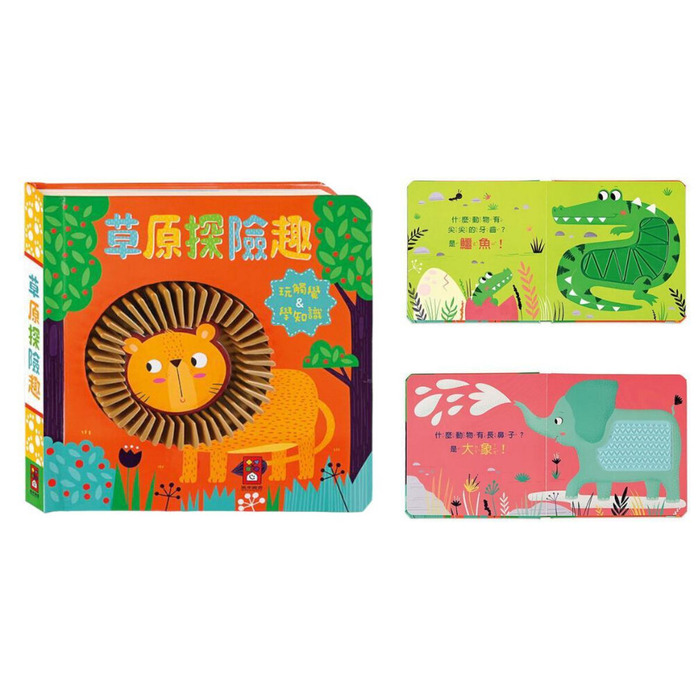 《草原探險趣》裡,觀察什麼動物有長鼻子?什麼動物有尖尖的牙齒?觸摸牠們身上的矽膠,一起來說說說看動物摸起來是什麼感覺,讓孩子練習口語表達、感受觸感,一起探索神奇的動物世界!。