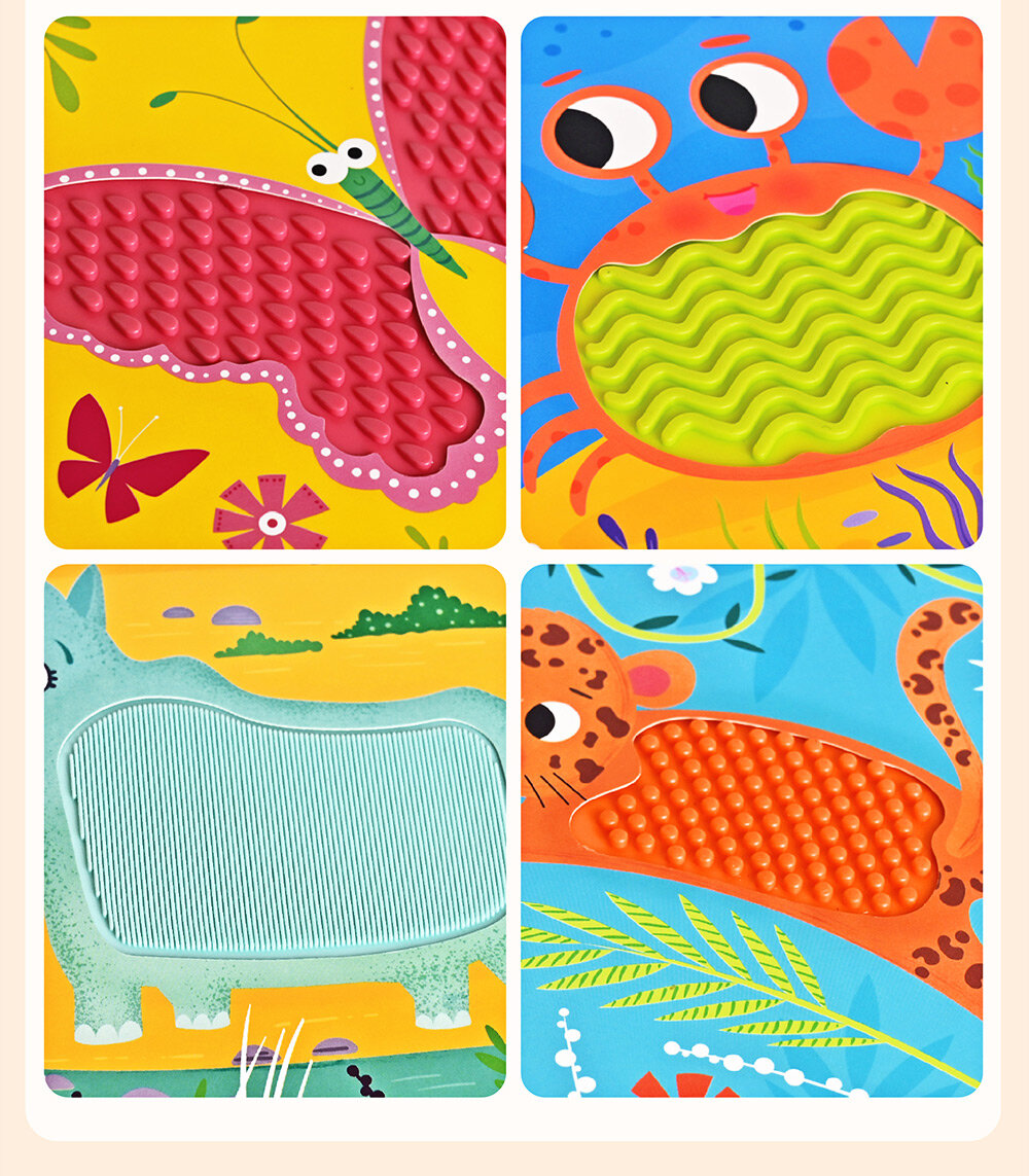 豐富多樣的內容,讓孩子一邊看繪本、一邊觸摸矽膠的同時,啟發動物認知的概念。