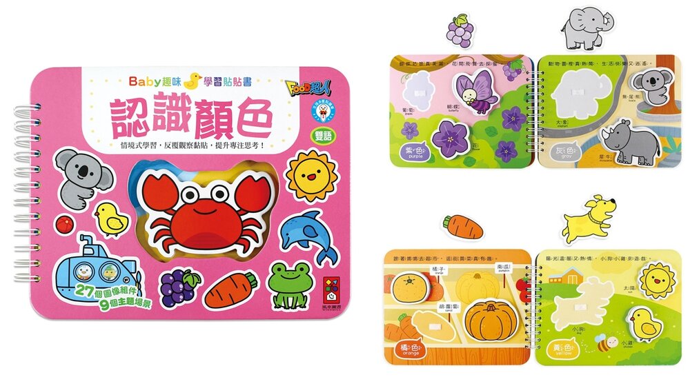 1.色彩豐富、形象生動,讓孩子在看圖黏貼的遊戲中,認識各種顏色。