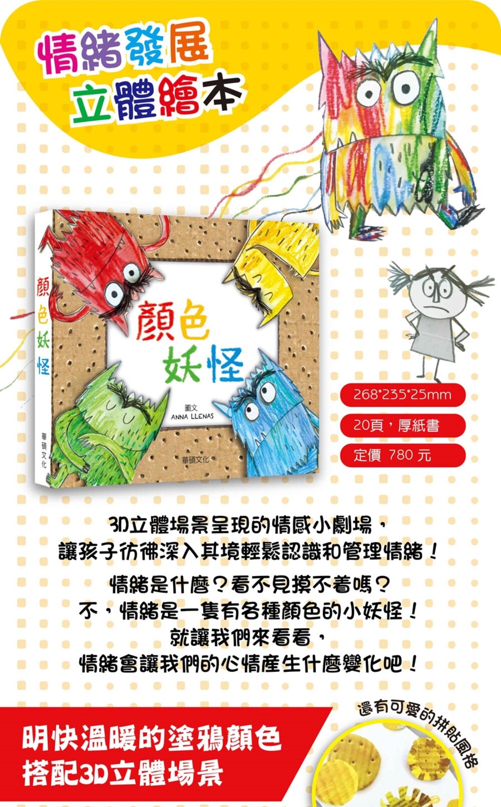 作者Anne Llenas為國際知名藝術治療師,創作出活潑童趣的顏色妖怪,全球暢銷百萬冊,更成為西班牙幼兒園指定教材。