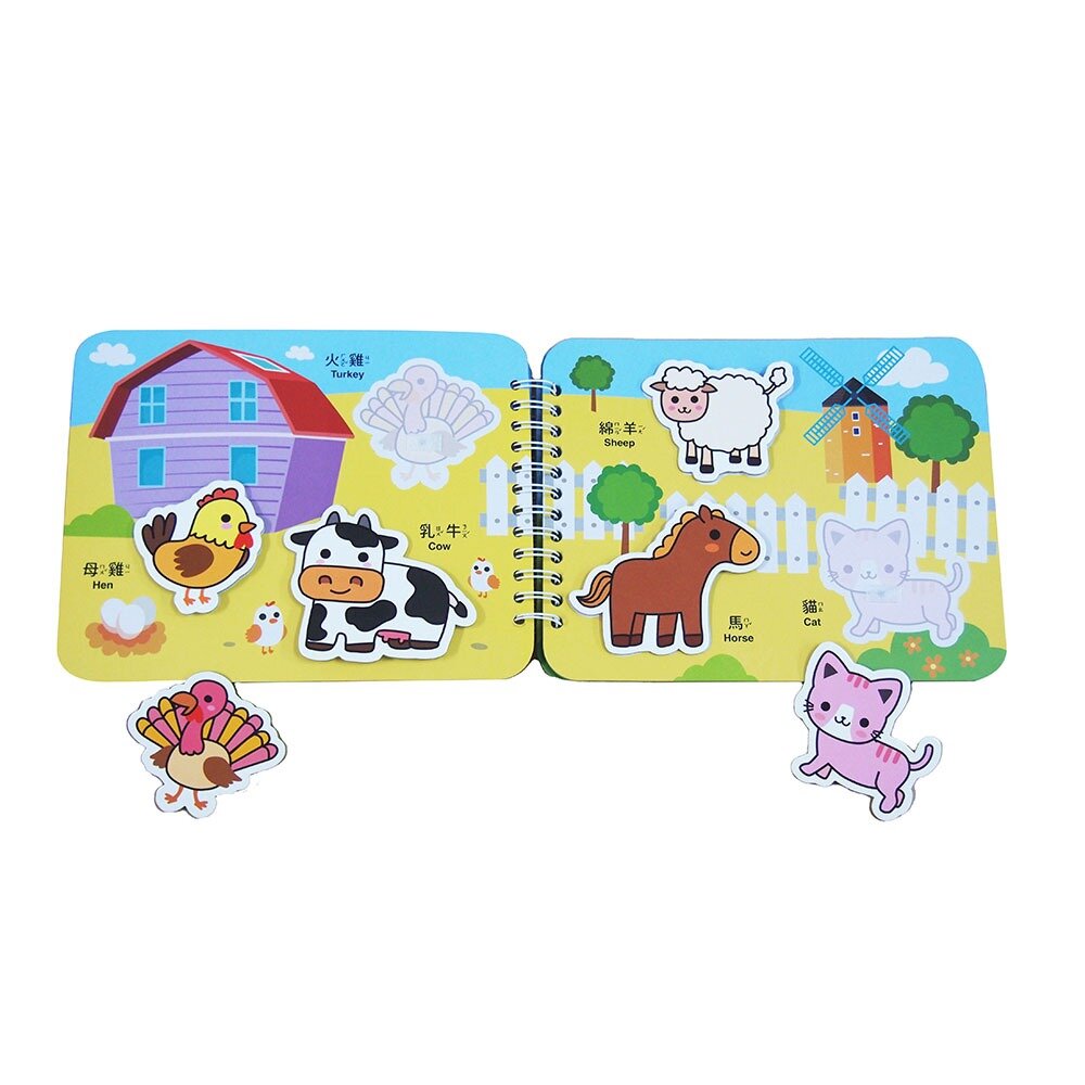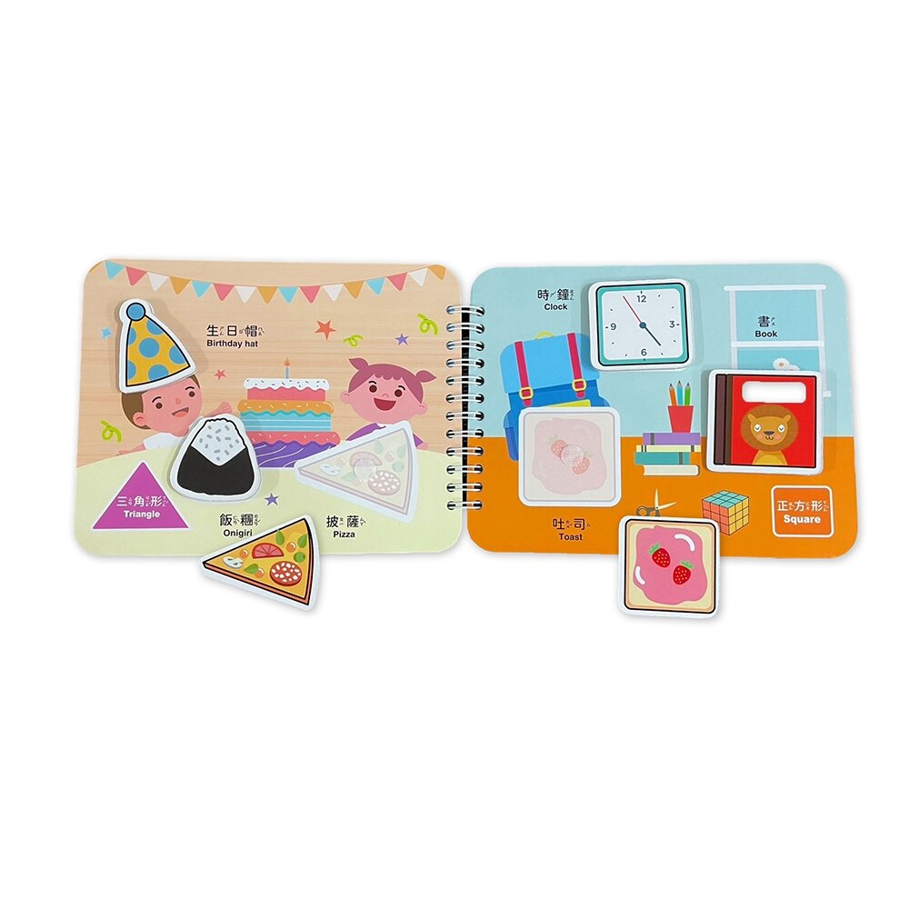 9個趣味場景搭配色彩繽紛的貼紙,引導孩子觀察形狀與顏色,建立分類概念,從遊戲中提升邏輯與語文力。