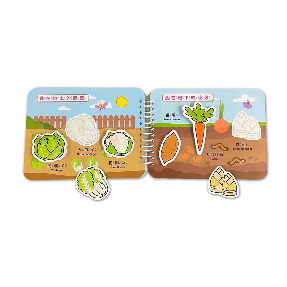 用27片可愛蔬果貼紙,帶孩子認識大自然的營養寶藏!搭配中英文對照,讓孩子邊貼邊說,學習超有感。