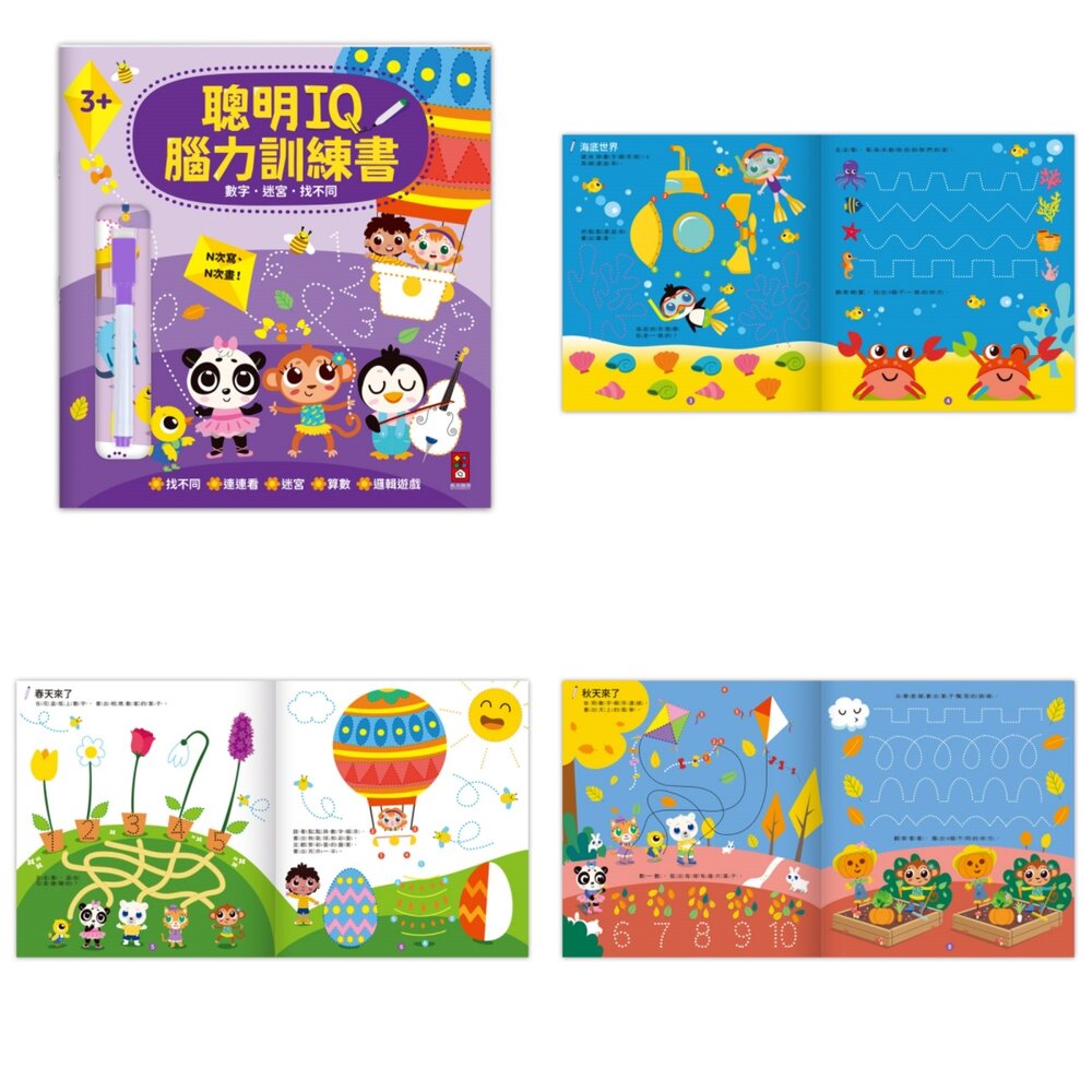 內含迷宮、拼圖、加減法、英文字母、觀察遊戲、時鐘學習、找不同等豐富主題,