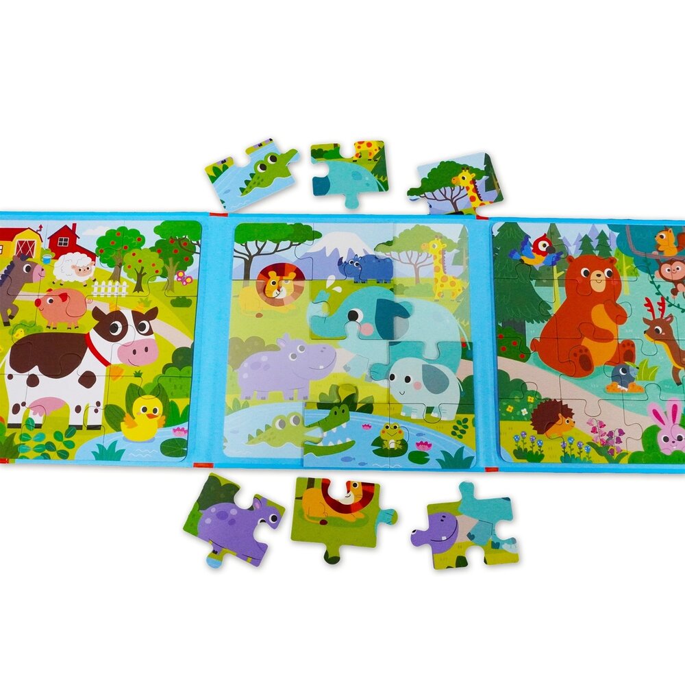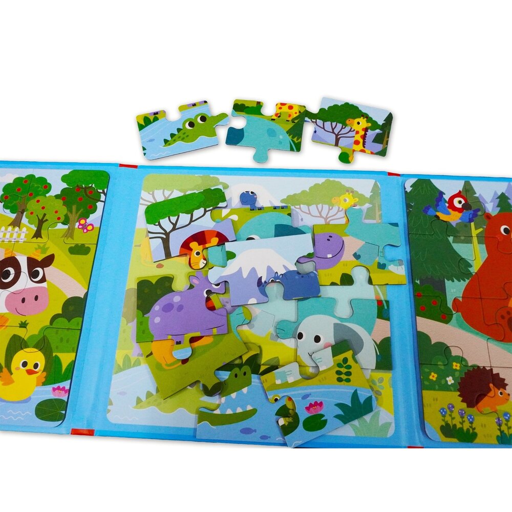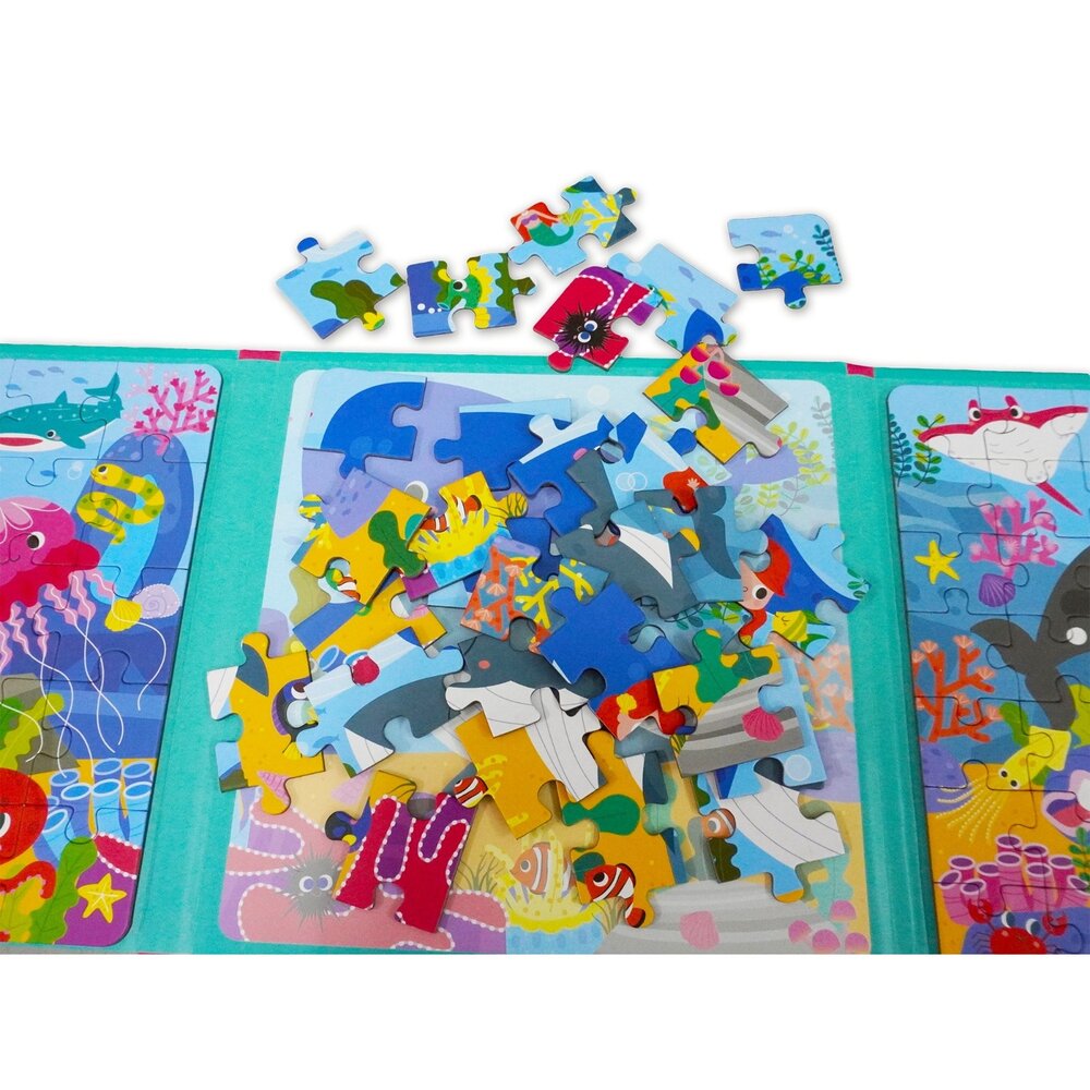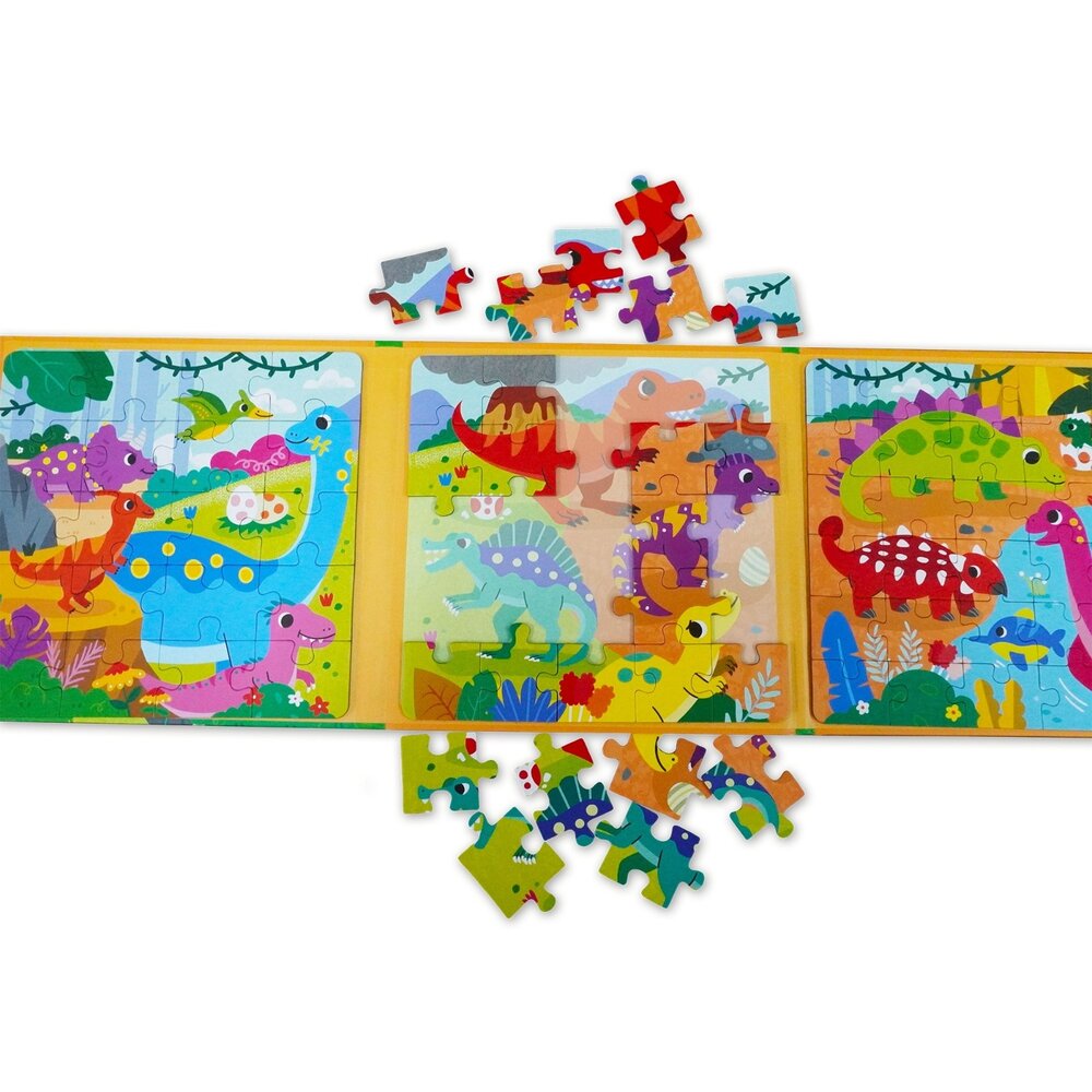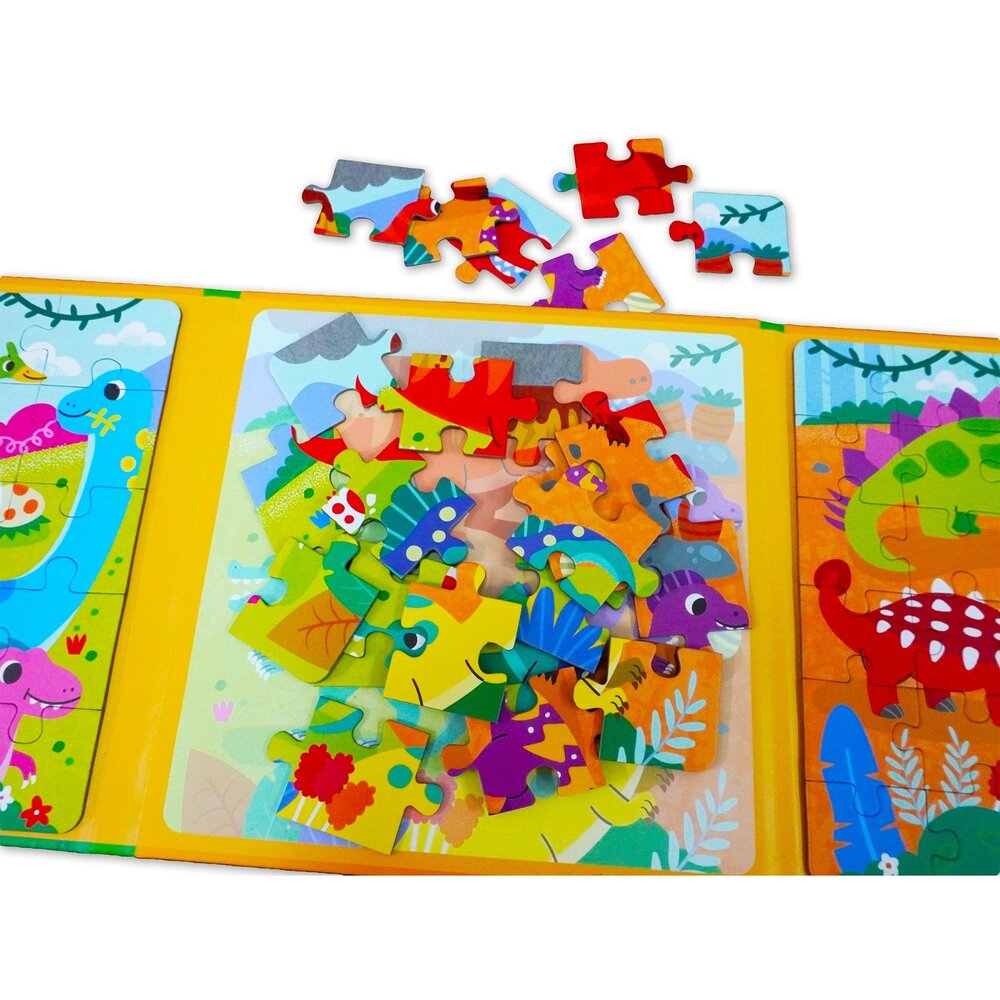 恐龍、交通、海洋、動物四大主題,讓孩子在喜歡的內容中專注投入,邊玩邊建立圖像辨識與邏輯能力。三折式收納設計輕巧不佔空間,不論在家、外出、等候時光,都能即時展開一場拼圖小冒險。