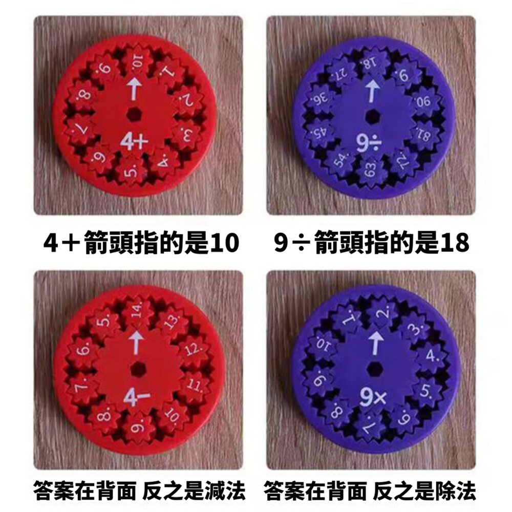 孩子看到數字就想逃?這組【雙面齒輪數學陀螺】讓他從「動手轉」開始學習!中央數字固定、外圈轉一轉,就能自己組出加法或乘法題,翻到背面還能練減法、除法,數學不再是壓力,而是小小的挑戰遊戲!