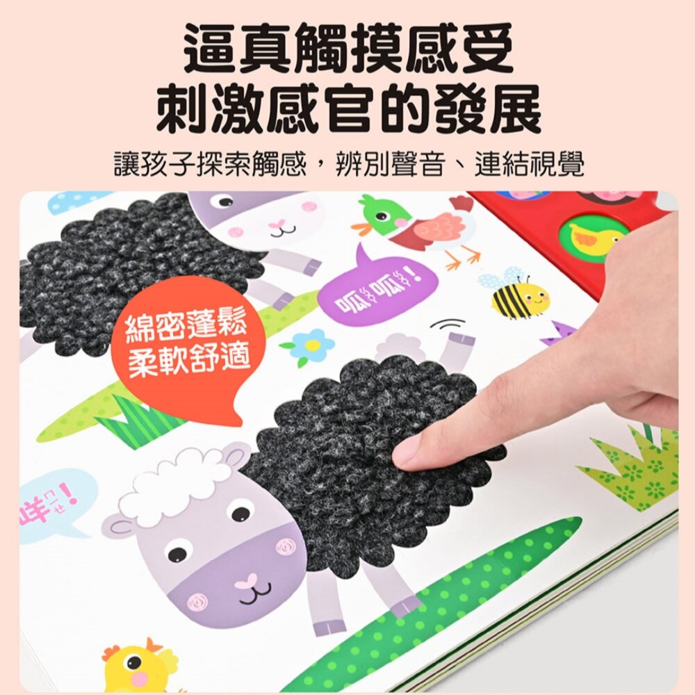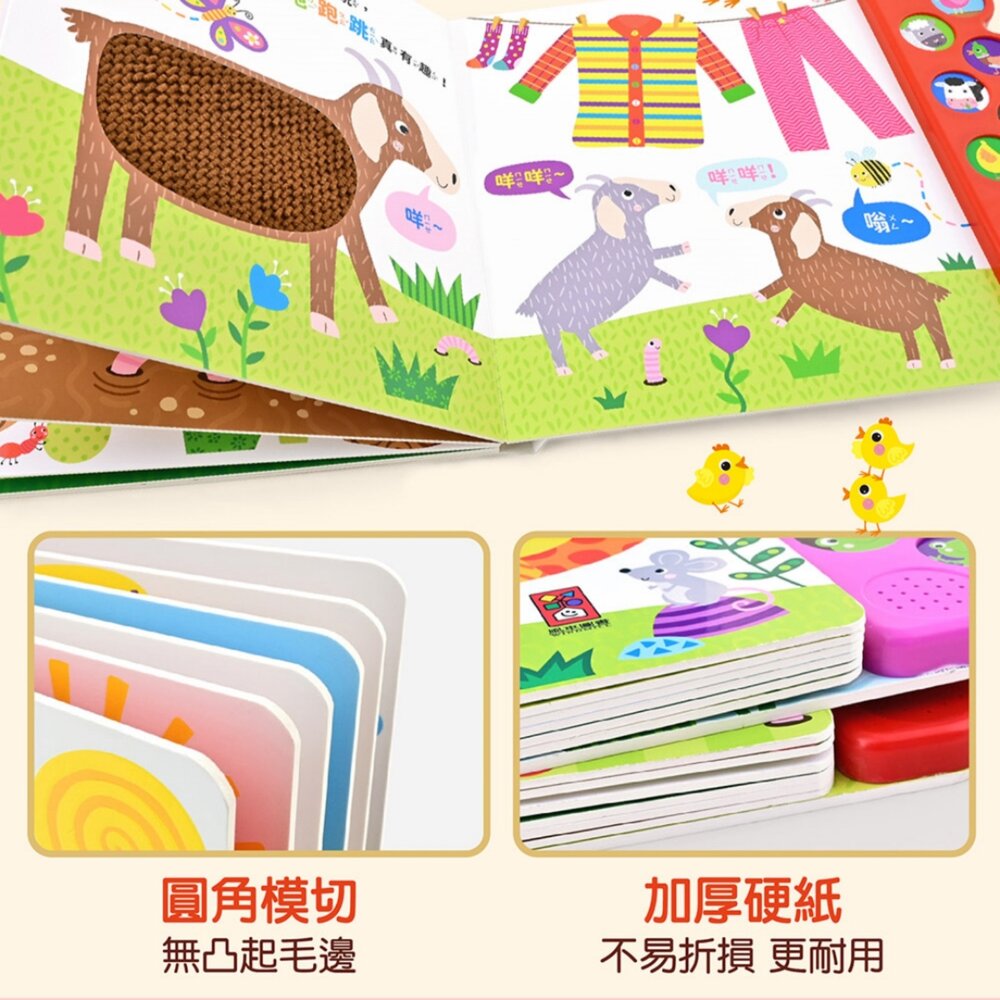 寶寶的小手輕輕按下,動物聲音立刻響起,再搭配毛毛、鱗片、絨毛等不同材質觸感,讓孩子在遊戲中認識世界。