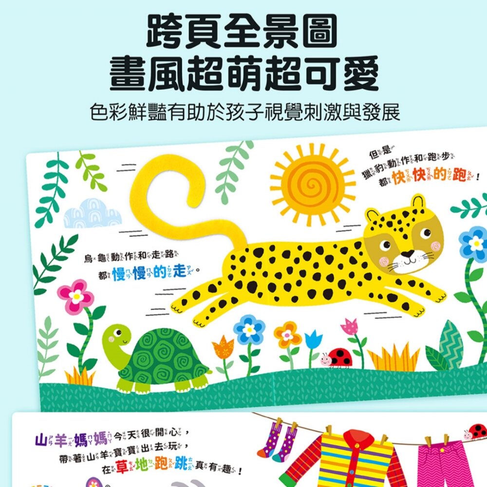 ✅ 視覺:鮮豔色彩 + 萌趣插圖,刺激寶寶專注力