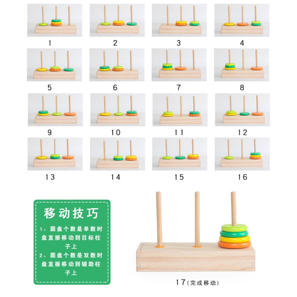 • 遞迴邏輯訓練:透過移動圓盤,幫助孩子建立基礎數學思維。