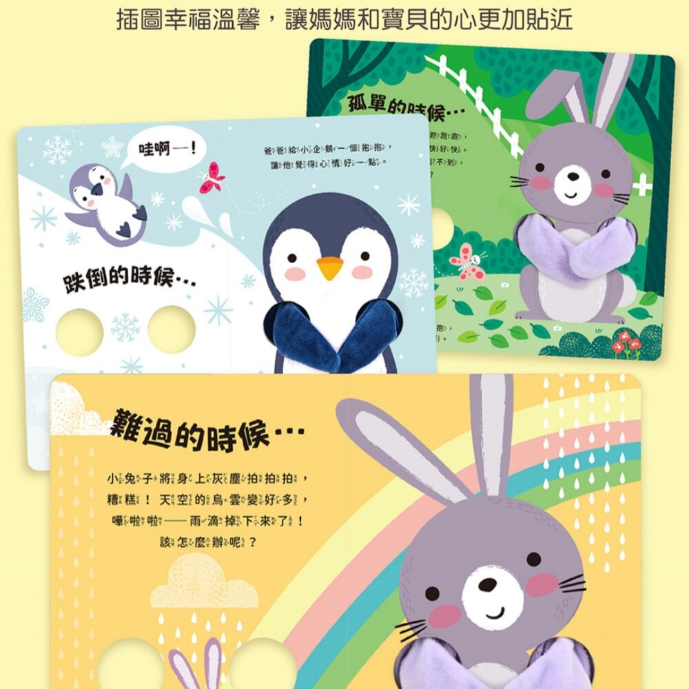 【風車圖書】愛的抱抱親子互動指偶書🐧小企鵝🐰小兔子│手偶繪本 情緒教育 共讀玩具 厚頁童書 安撫寶寶必備