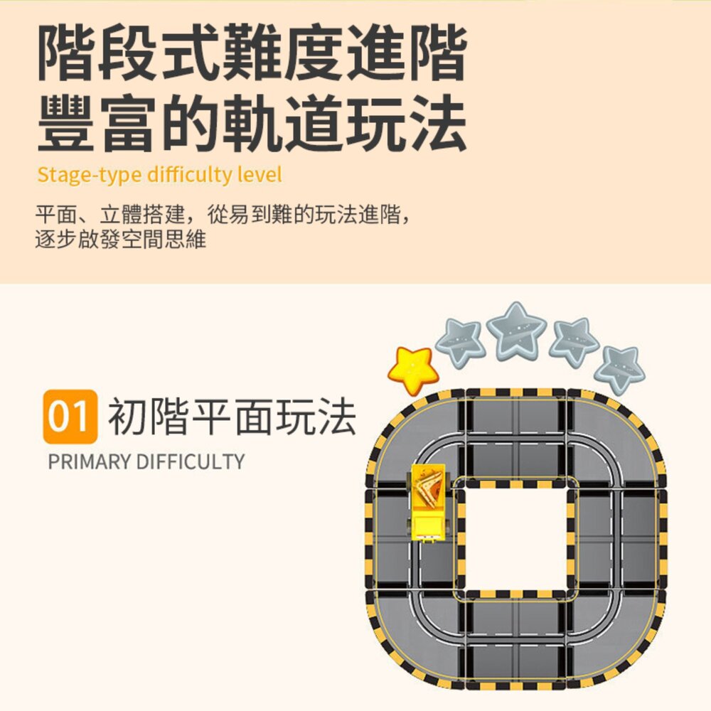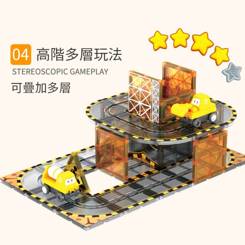 • 內容物:軌道片、建築磁力片、電動車、交通標誌、加固連接件