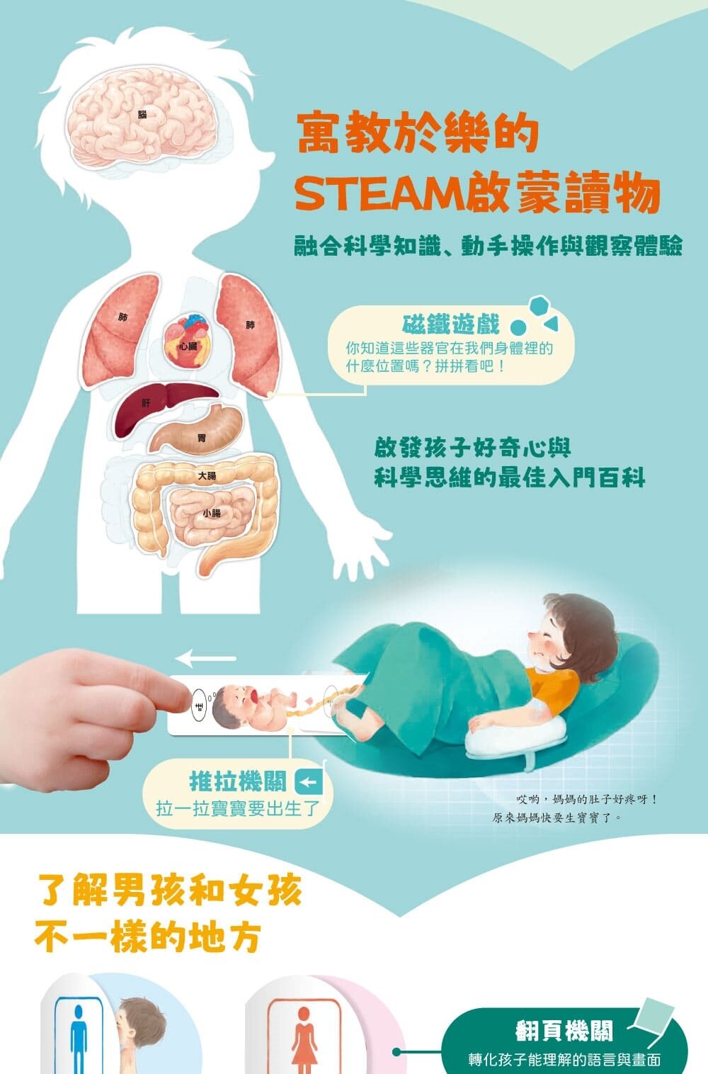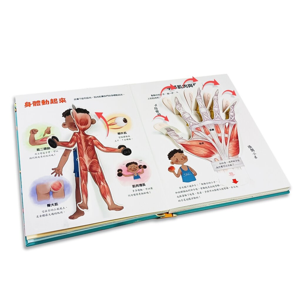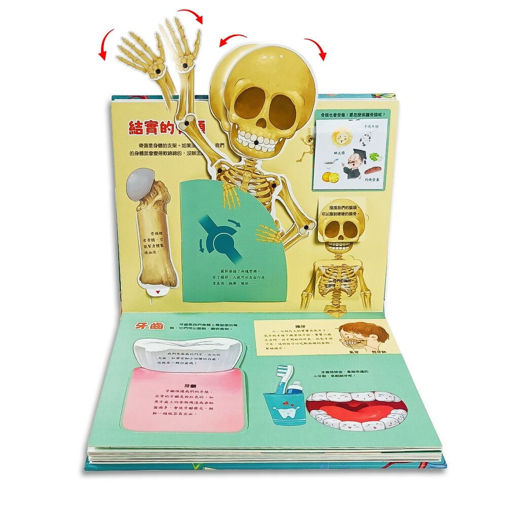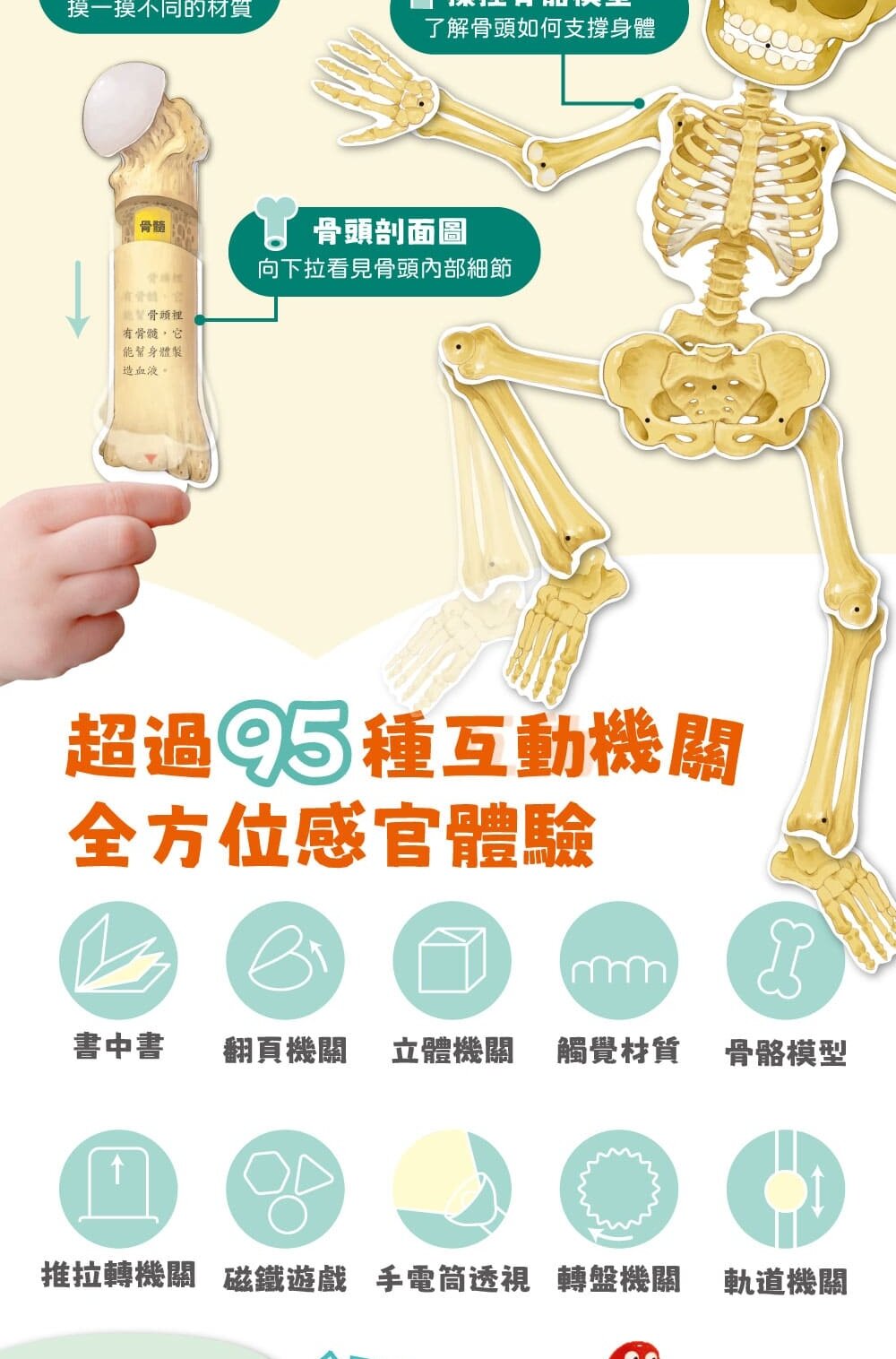 書中結合立體機關、磁力貼、骨骼模型、透視頁、推拉轉設計,
