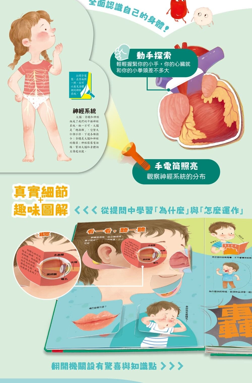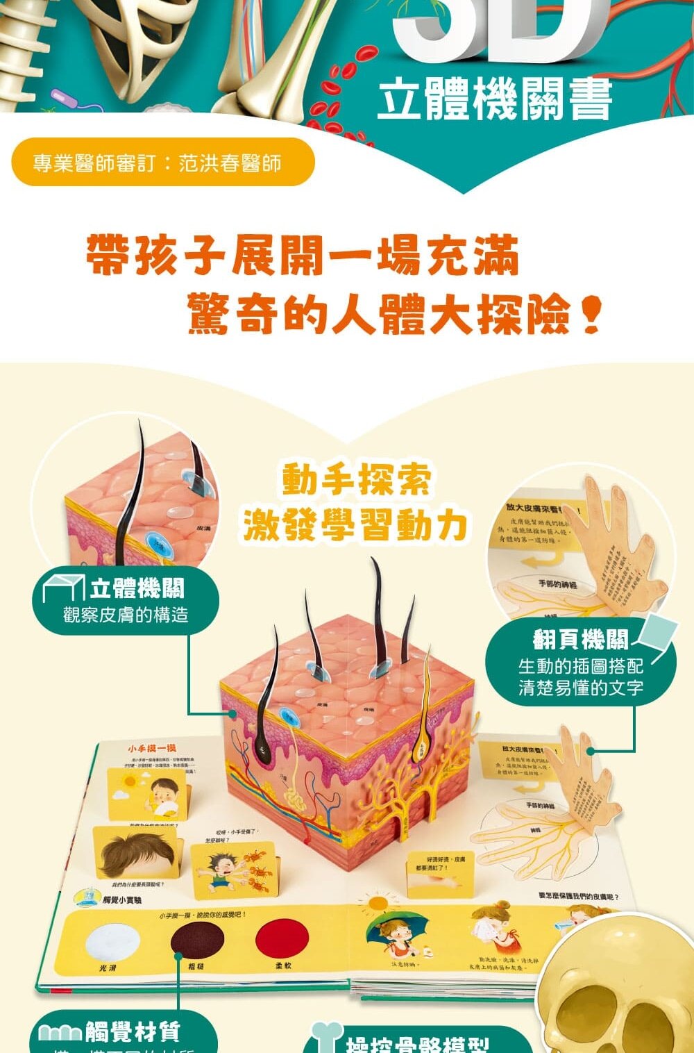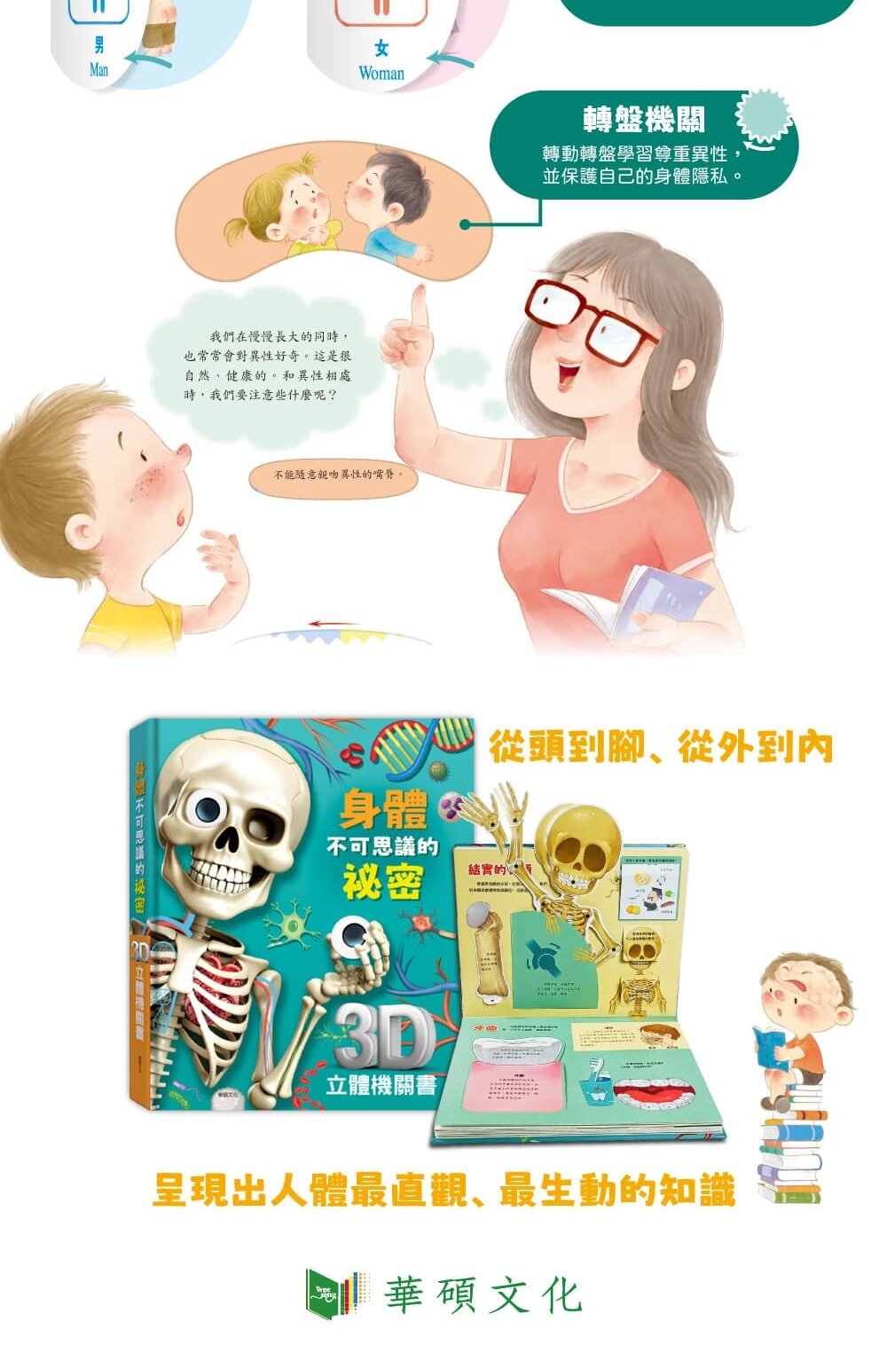 書中結合立體機關、磁力貼、骨骼模型、透視頁、推拉轉設計,