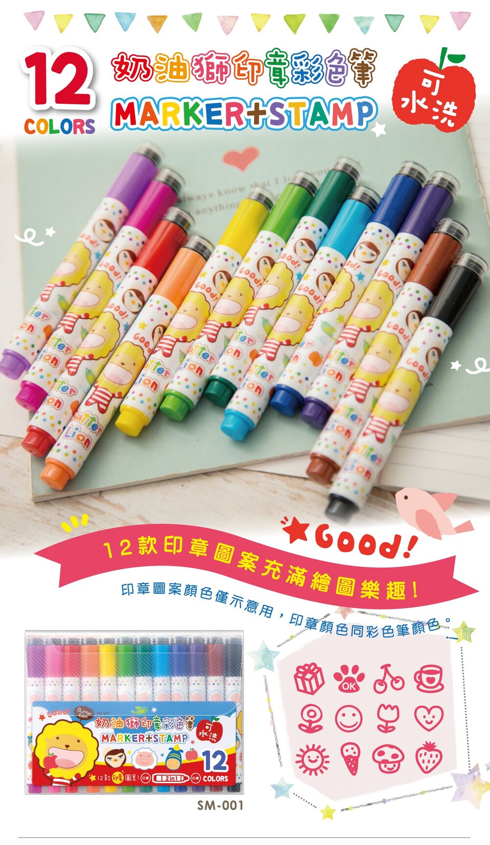| SM-001/奶油獅印章彩色筆/12色 | 售完 |