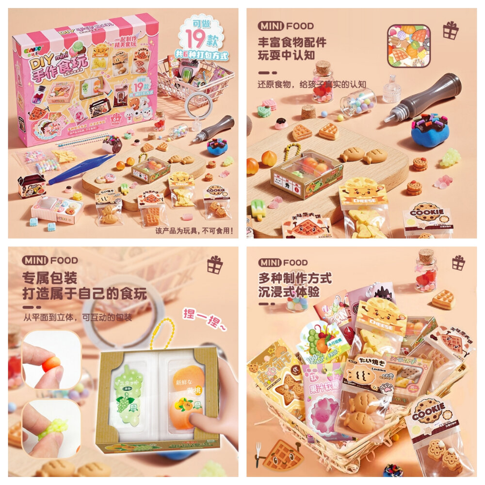 看起來超像、其實是玩具!孩子最愛的 DIY 迷你手作食玩系列,從便當、熟食、糖水鋪到奶茶屋、水果刨冰,一組就能開一間迷你小店,滿足孩子對「做料理、開店家」的所有幻想。
