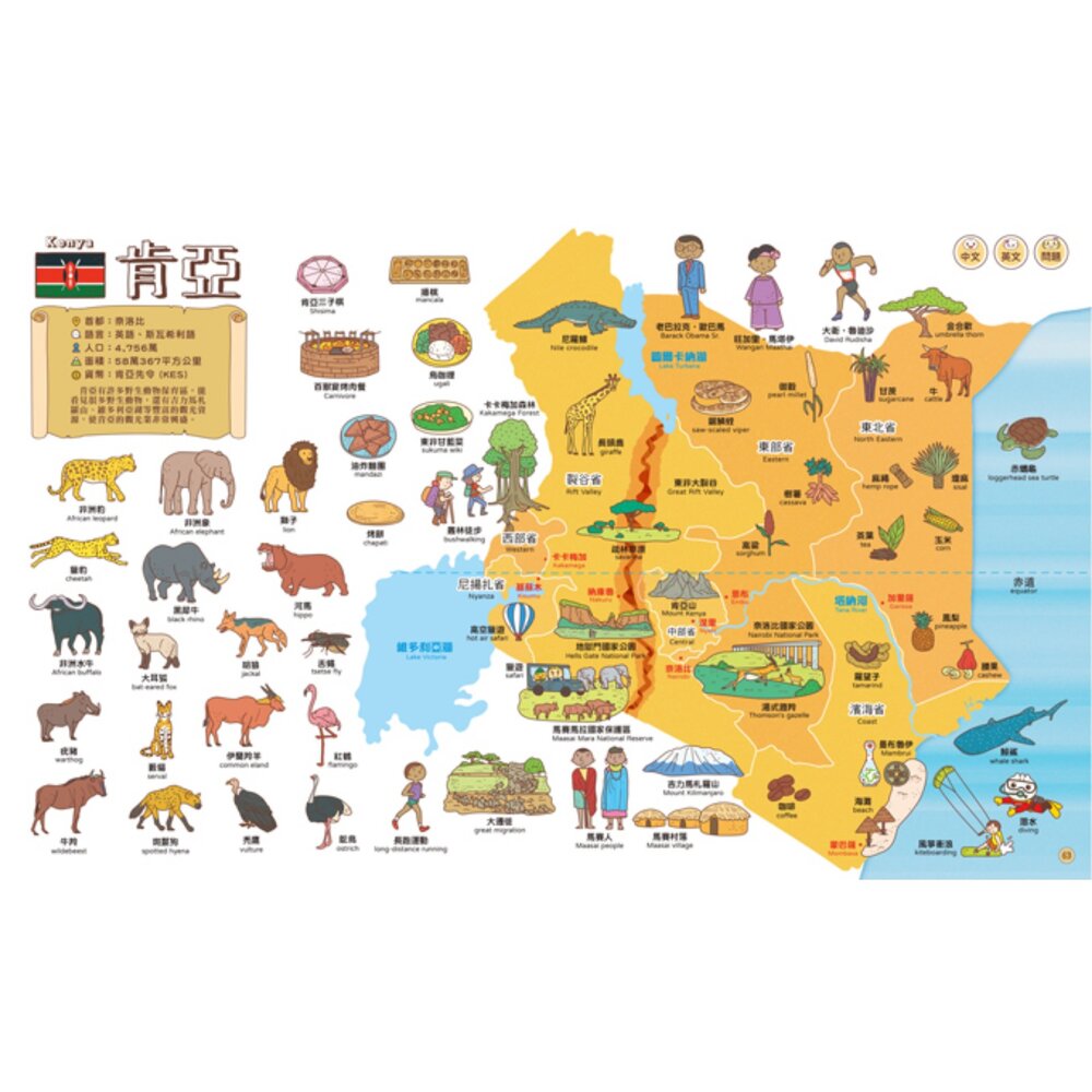 帶著孩子從「家鄉台灣」開始探索世界七大洲,認識景點、文化、國旗與地理位置。套書收錄近千至數千組中英雙語單字,搭配精美全景彩繪插圖,讓學習自然、人文與國際知識更有臨場感,啟發孩子對世界的好奇心與觀察力。