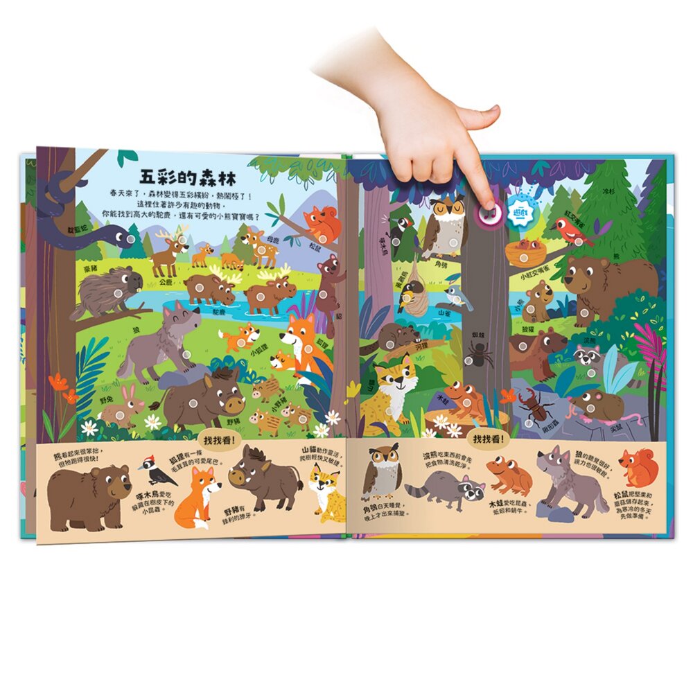 而是孩子會一邊看畫面、一邊找目標、再按下去確認聲音的互動學習書。