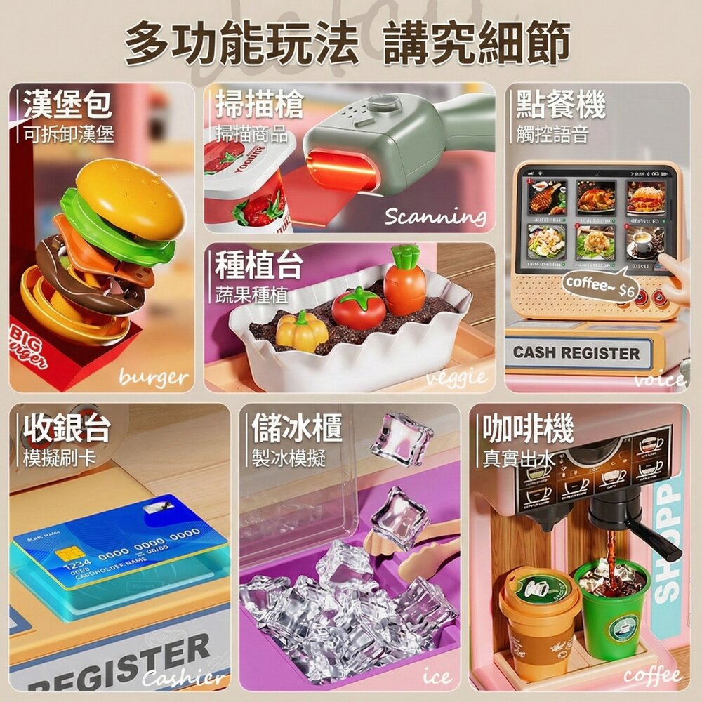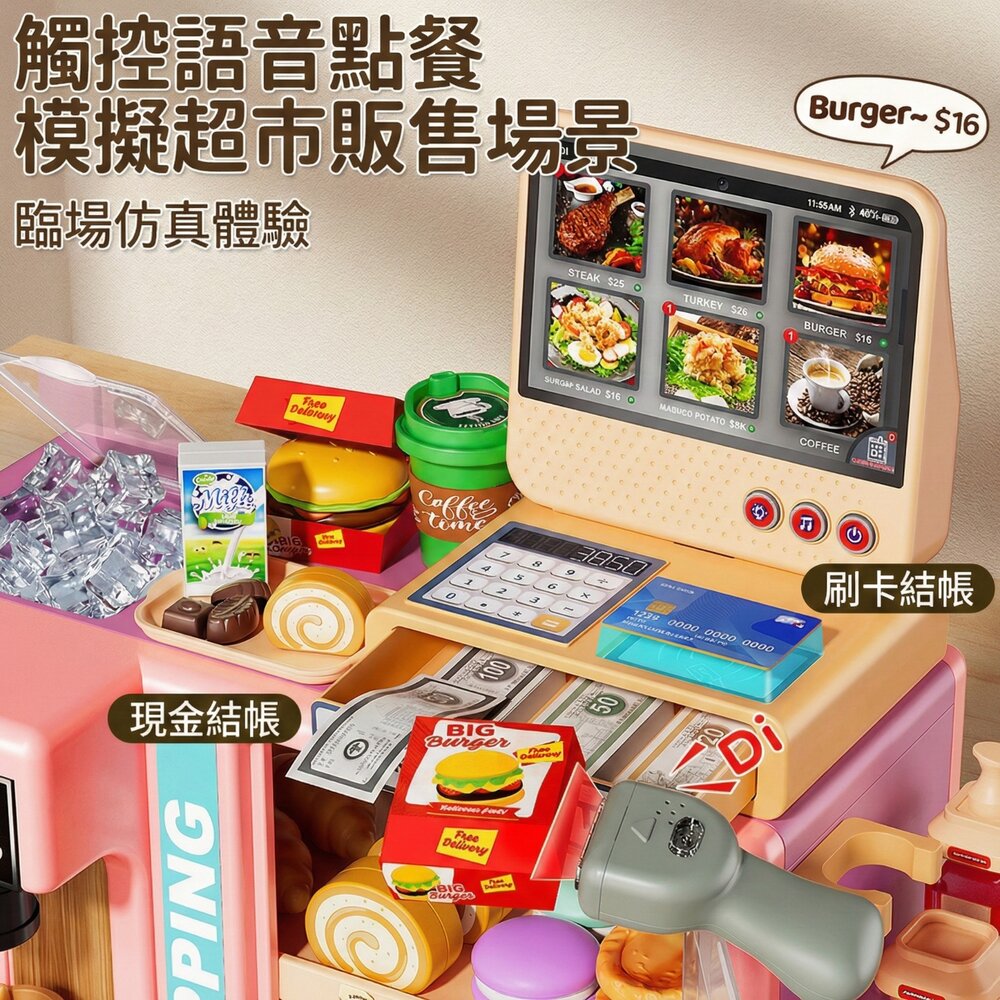 商品名稱:仿真超市收銀咖啡機玩具組