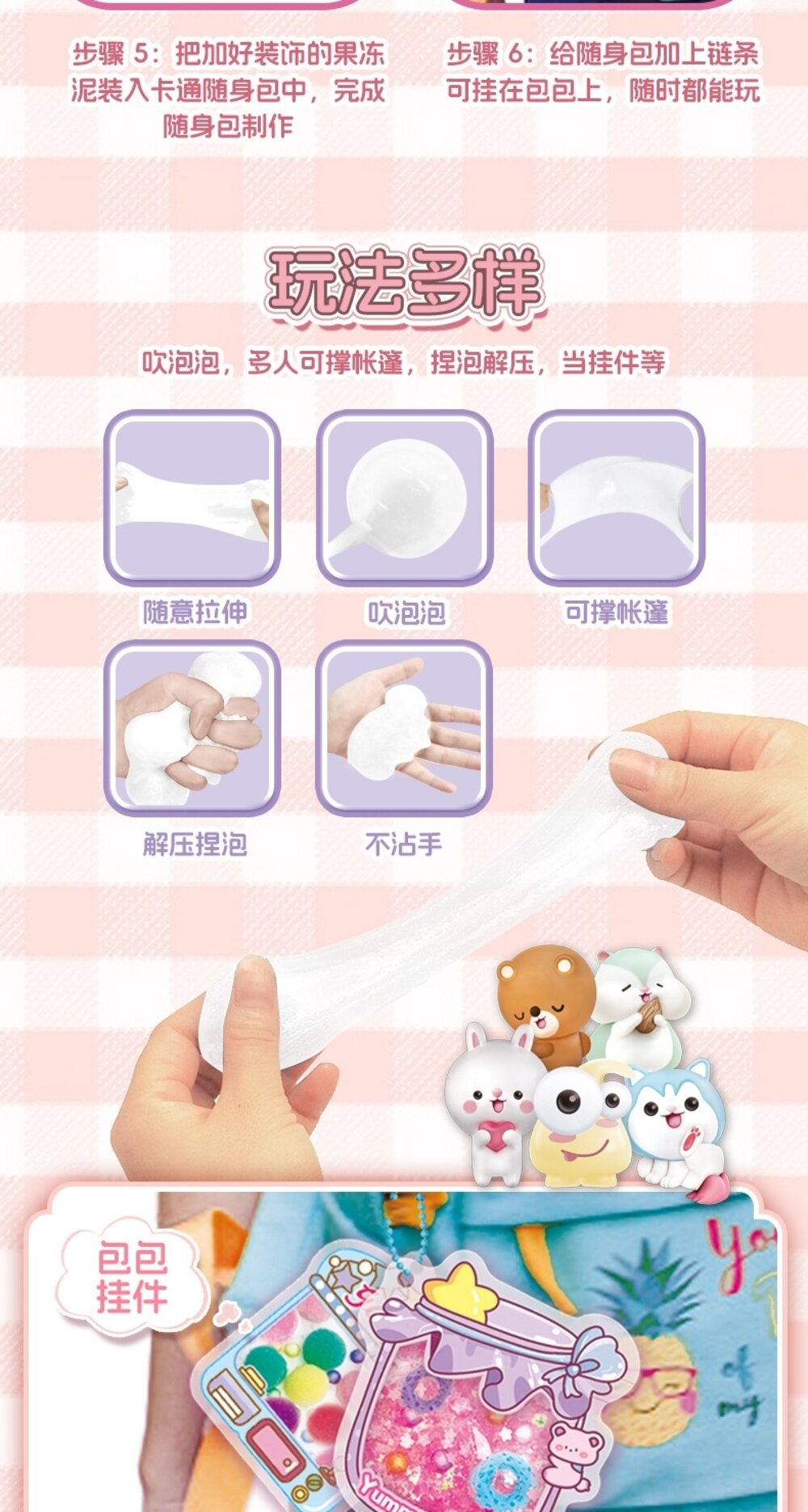 成品玩法:拉伸/吹泡泡/捏捏解壓/掛書包